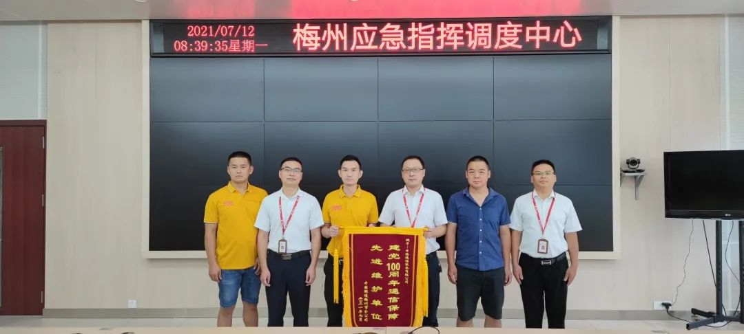 活动当天,各传输枢纽值守、干线盯防、仪表、车辆、应急物资全部到位,除落实安全人员24小时值班机制外,公司还部署实施了态势感知、应急响应、持续安全评估、安全监测巡检等措施,实现重保期间网络安全零事故。为此,pa集团官网通服被中国联通梅州市分公司授予“建党100周年通信保障先进维护单位”的荣誉锦旗。